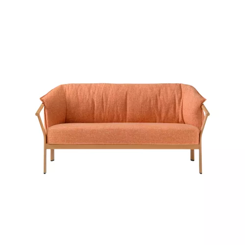O canapea cu două locuri pentru exterior, construit în jurul unui contrast fermecător: o structură sobră, atent definită, îmbrățișând o pernă moale, generoasă și profund confortabilă. Structura din aluminiu extrudat, cu picioare ovale sudate armonios de cotierele rotunjite, creează o siluetă stabilă și rafinată.