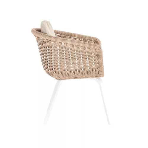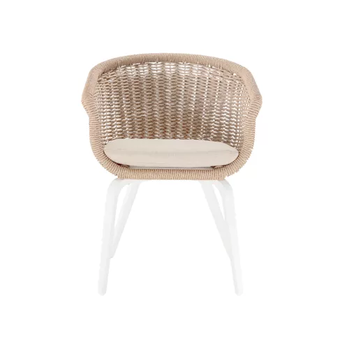 Fotoliul de exterior Mellara combină materiale durabile cu un design elegant. Structura din aluminiu este împletită cu sfoară sintetică Wintech. Pernele detașabile sunt tapițate cu material Olefin și spumă cu uscare rapidă, ideale pentru terase horeca și stiluri diverse.