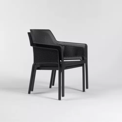 Net Relax este fotoliul perfect ce îmbină confortul, eleganța și durabilitatea pentru spațiile HoReCa. Realizat din polipropilenă cu fibră de sticlă și finisaj mat, dispune de picioare antiderapante și design stivuibil pentru depozitare eficientă. Rezistent la intemperii și raze UV, este ideal pentru utilizare intensivă în aer liber. Disponibil în culorile cadrului: Alb, Antracit, Salice, Tortora, Senape, Coral și cu perne din spumă poliuretanică (densitate 28 kg/m³) în nuanțe Grey Stone, Rosa Quarzo, Senape, Denim, The Verde, Sardinia, Alb sau Gri. Creat pentru terase de restaurante, cafenele și bistrouri ce caută un aspect rafinat și rezistență de lungă durată.