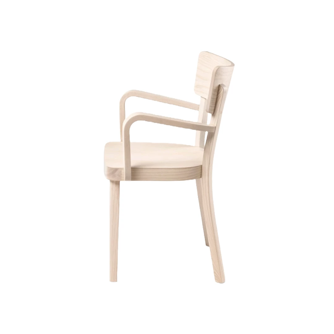 Scaunul Pawel A din lemn cu cotiere întruchipează simplitatea, durabilitatea și atractivitatea atemporală. Designul său universal îl face potrivit pentru o gamă largă de interioare, menținând eleganța și confortul de-a lungul deceniilor. Fabricat din lemn masiv de fag și disponibil în mai multe culori de pete, este o alegere fiabilă și elegantă pentru diverse medii HoReCa.