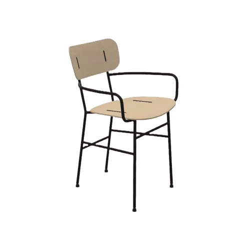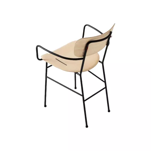 Scaunul Piuma PM LG cu cotiere combină ușurința, eleganța și versatilitatea. Baza sa metalică cu patru picioare susține un șezut și un spătar din lemn furniruit, completate de inserții metalice vizibile și butoane negre pentru un aspect rafinat. Personalizabil atât în finisajul cadrului, cât și al șezutului, este ideal pentru mediile horeca moderne și pentru interioarele versatile.