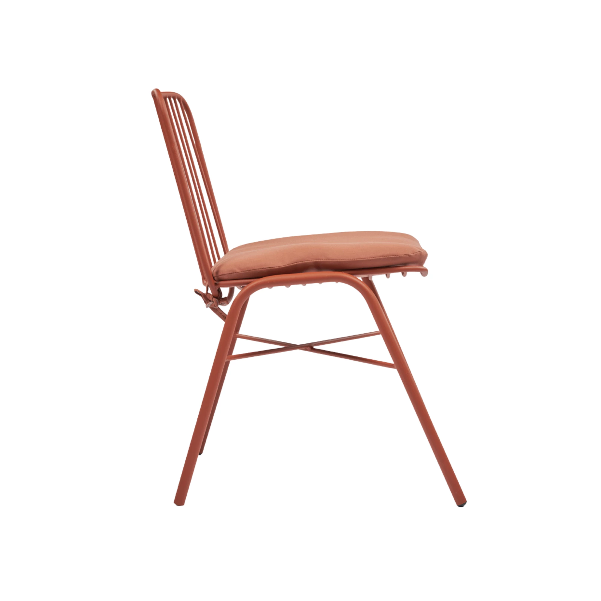 Scaun pentru exterior cu structură metalică și pernă pentru șezut, conceput pentru terase HoReCa și zone de dining în aer liber. Liniile verticale ale spătarului oferă un aspect ușor și echilibrat, iar structura metalică asigură durabilitate în utilizare intensă. Potrivit pentru cafenele, restaurante, patio-uri și zone de terasă unde sunt necesare atât confortul, cât și un design practic.