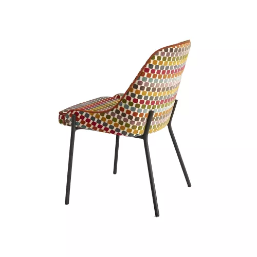 Romie S este un scaun confortabil cu cadru din oțel vopsit în câmp electrostatic, disponibil în orice culoare RAL. Este complet tapițat și poate fi personalizat cu o gamă variată de materiale profesionale sau piele ecologică. Ideal pentru locații horeca și stiluri diverse de amenajare interioară.