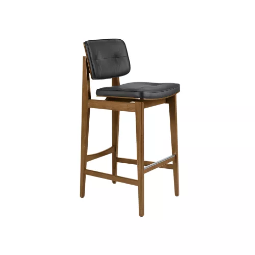 Scaun de bar elegant, realizat din lemn de fag, cu șezut și spătar tapițate pentru un plus de confort. Cadrul este disponibil într-o gamă variată de nuanțe de finisaj, potrivindu-se perfect oricărui concept de amenajare. Conceput special pentru industria Horeca, acest scaun îmbină designul clasic cu rezistența ridicată. Poate fi tapițat în piele ecologică sau într-o gamă largă de materiale textile premium, asigurând durabilitate îndelungată chiar și în condiții de utilizare intensă — o alegere ideală pentru baruri, cafenele și restaurante.