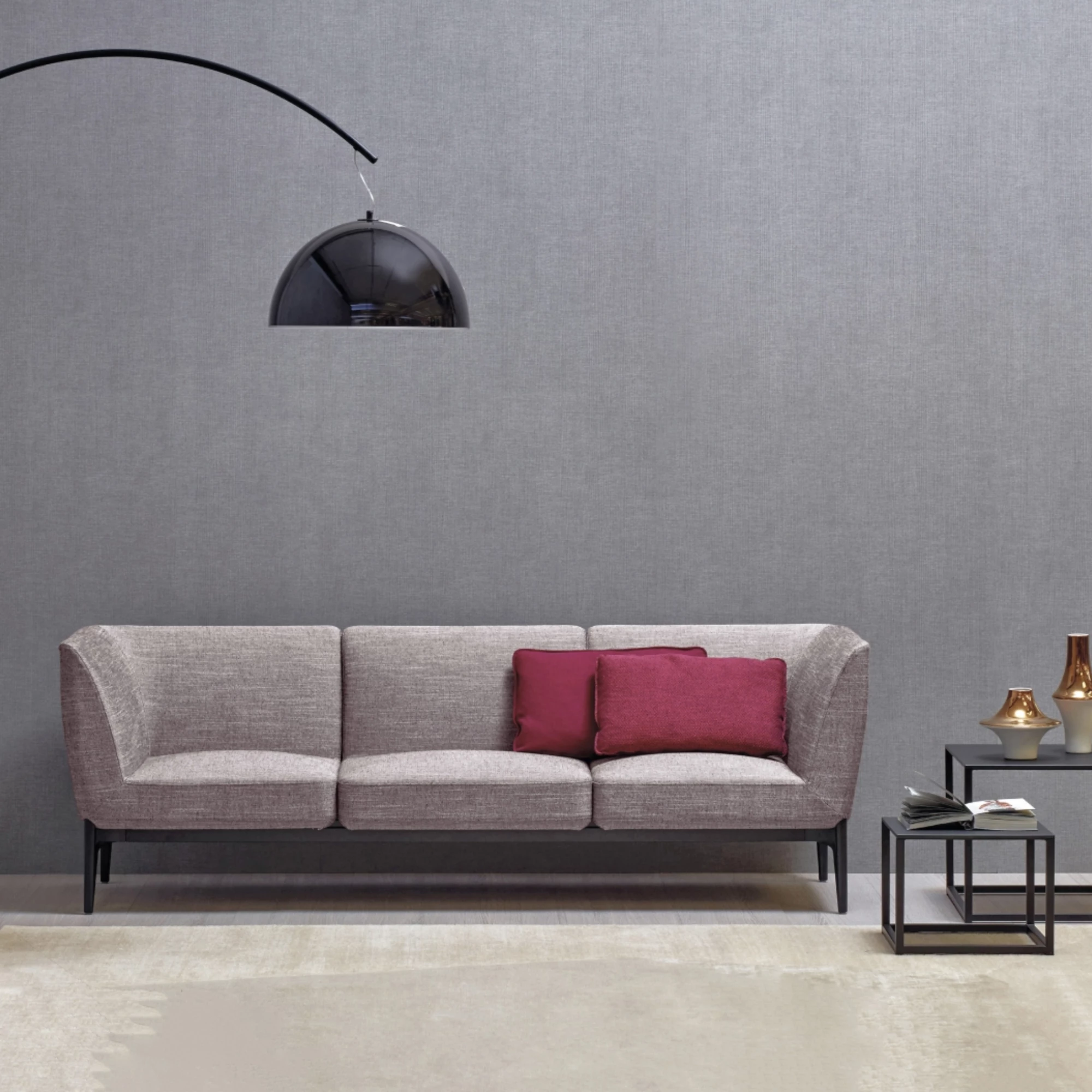 Acest sistem modular de ședere combină elemente liniare, de colț și curbe, împreună cu pufuri asortate, pentru a crea o canapea tapițată extrem de flexibilă, ideală pentru spații contract destinate socializării. Fiecare modul este construit pe un cadru metalic solid, cu spumă poliuretanică de înaltă reziliență și benzi elastice în spătar, oferind confort de durată în medii HORECA cu trafic intens. Picioarele din aluminiu turnat sub presiune, amplasate la extremități, completează aspectul modern și elegant.