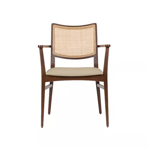 Soul A Wicker este un scaun elegant cu brațe, cu structură din lemn masiv de fag, disponibil în mai multe nuanțe. Are șezut tapițat și spătar din ratan, fiind o piesă ușoară, clasică și confortabilă – ideală pentru locații HORECA variate.