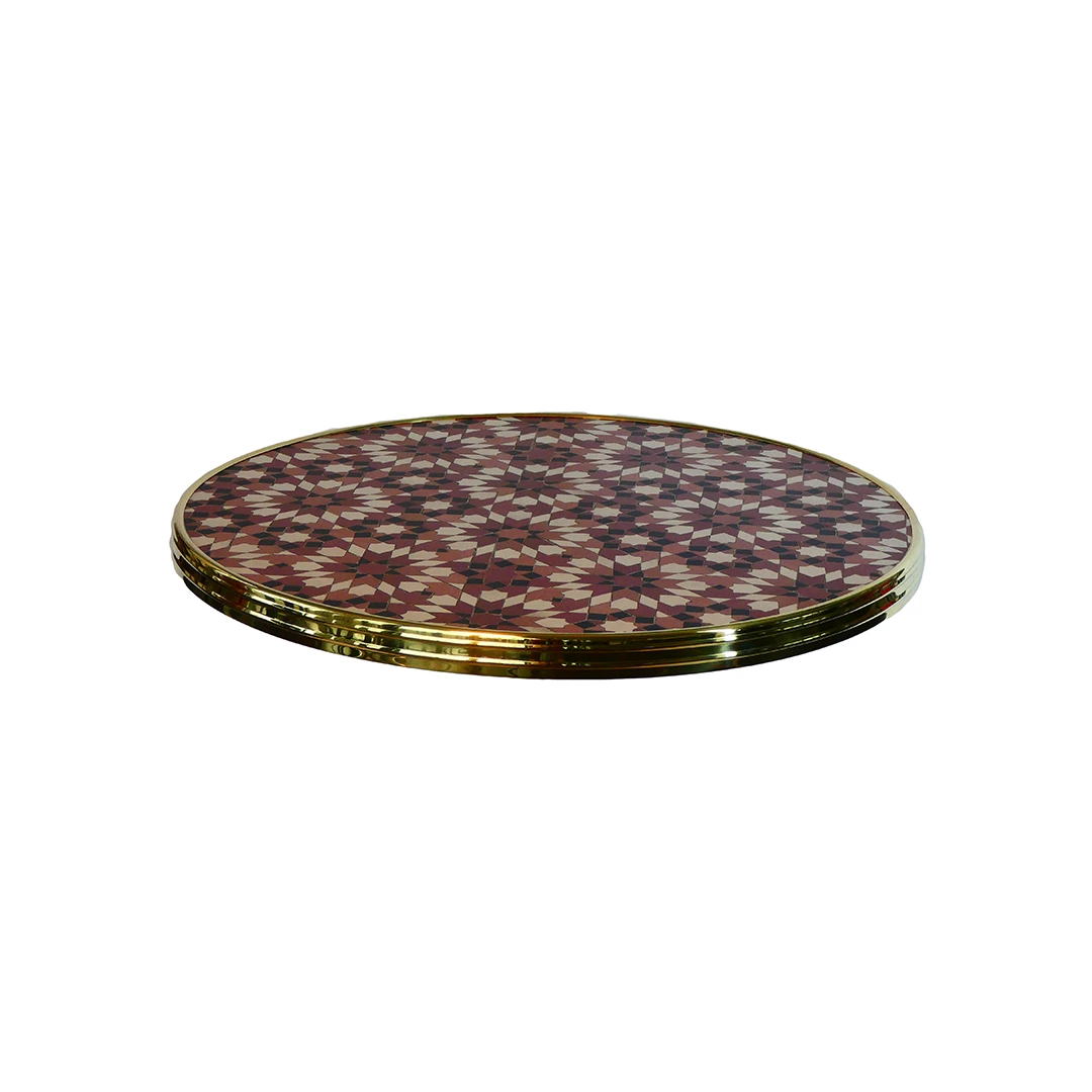 Blatul Werzalit Bistro cu inel este ideal pentru spațiile horeca, interioare sau exterioare. Prevăzut cu margine din alamă, este rezistent la raze UV și căldură, durabil, rezistent la șocuri și ușor de curățat. Disponibil în mai multe dimensiuni și decoruri.