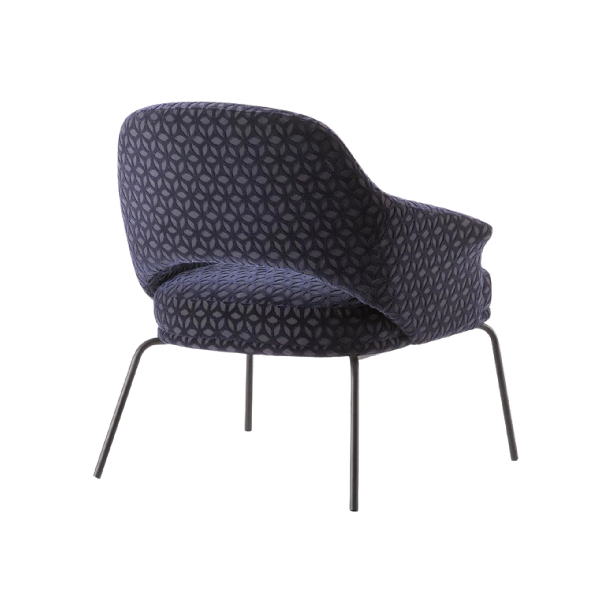 Wings Lounge Metal este un fotoliu cu un design rafinat, realizat cu o atenție deosebită la detalii și proporții. Cadrul solid din metal cu finisaj negru semimat susține șezutul complet tapițat. Disponibil în numeroase stofe profesionale, este ideal pentru spații horeca și utilizare intensivă.