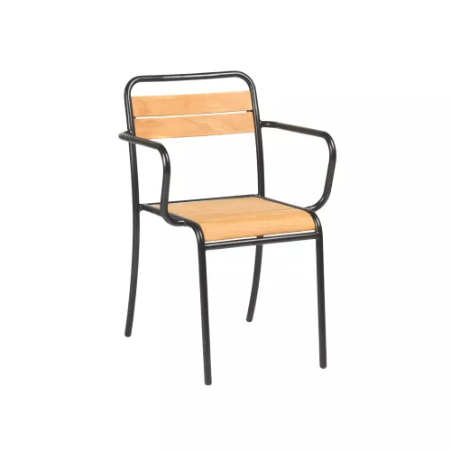 Scaunul Yogo A este o alegere elegantă și rezistentă, concepută pentru utilizare profesională în exterior – perfect pentru restaurante, terase sau cafenele. Fabricat cu un cadru metalic solid și șezut și spătar din lemn de castan, îmbină aspectul natural cu durabilitatea. Datorită structurii tratate special, este ideal pentru utilizare în aer liber, rezistând cu succes la intemperii și trafic intens. Disponibil într-o gamă variată de culori RAL, poate fi personalizat pentru a se potrivi oricărui concept de design. Yogo A este soluția perfectă pentru afaceri care doresc un mobilier de exterior de calitate și cu stil.