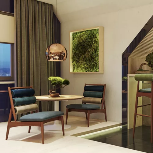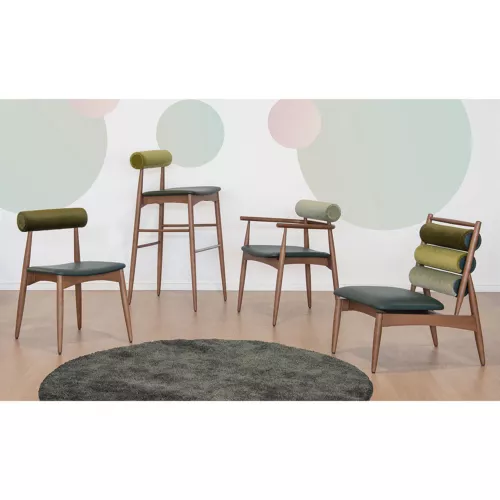 Yoto Lounge este un scaun lounge fără brațe, elegant și funcțional, destinat utilizării în interiorul restaurantelor, cafenelelor și lounge-urilor moderne. Construit pe un cadru solid din lemn de fag, cu picioare din același material, oferă stabilitate și un aspect natural rafinat. Tapițeria realizată din materialul clientului (COM) permite personalizarea completă în funcție de stilul spațiului. Designul fără brațe oferă libertate de mișcare și se potrivește perfect în spații restrânse. Spuma standard asigură confortul necesar pentru utilizare îndelungată. Livrat în ambalaj standard, Yoto Lounge este alegerea ideală pentru amenajări rafinate și versatile în domeniul ospitalității.